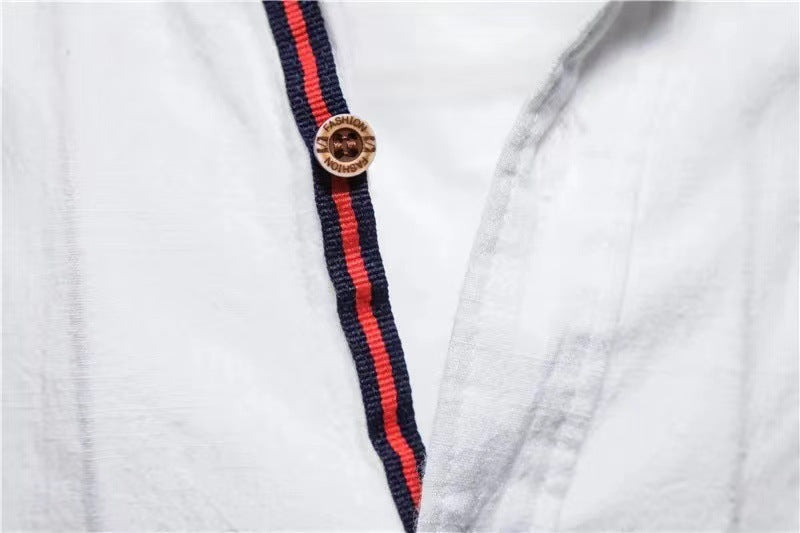 Men's Cotton And Linen Casual Fashion Solid Color Long Sleeve Henley Shirt